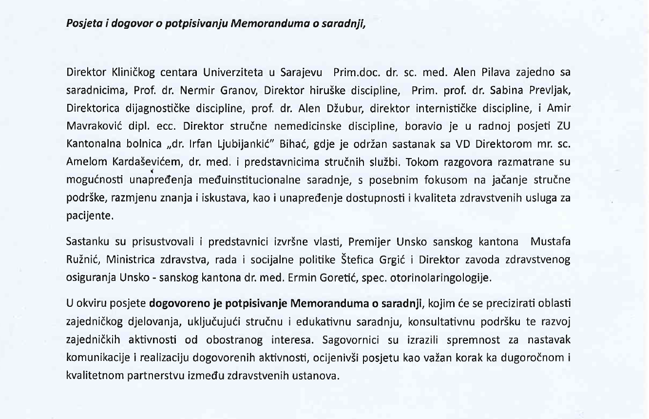 Posjeta i dogovor o potpisivanju Memoranduma o saradnji
